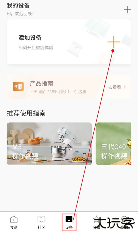 1、用户进入软件后,点击下发的“设备”,再点击上方的加号即可开始连接。