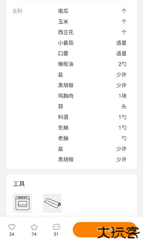 然后就可以查看食材清单进行食材的准备啦,还需要准备好制作工具。