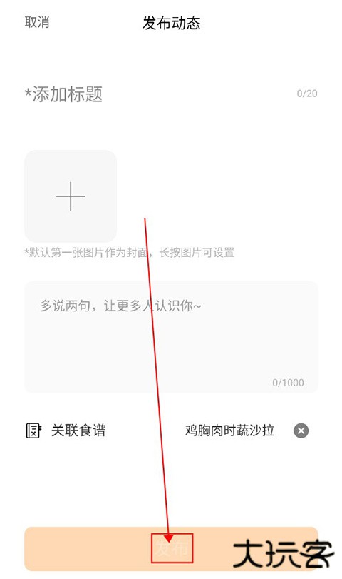 用户需要编辑制作内容,可以写一写心得或者方法,然后再上传自己制作的美食照片,就可以点击下方的“发布”,将作品发布到动态和大家分享啦!