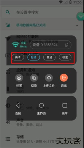 4、如图所示,可以切换手机普清、高清、极速等分辨率