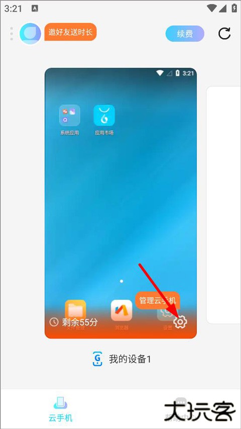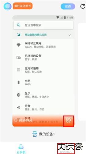 1、打开软件,可以看到云手机设置界面,点击右下角可以设置手机,右下角的帮助中心各种疑难解答
