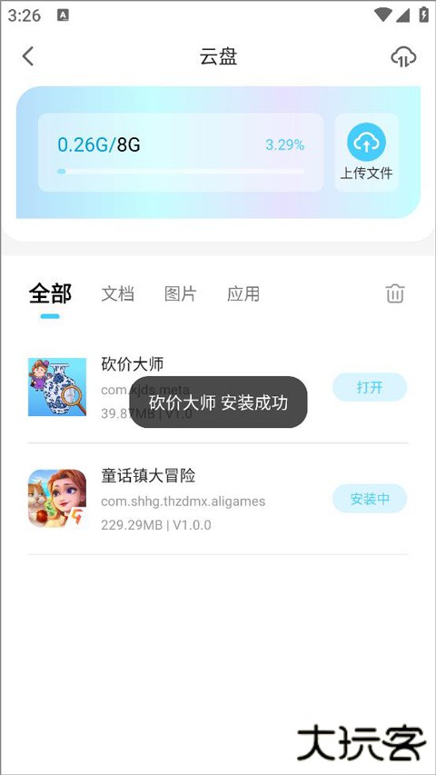1、用户打开小滴云手机app,首先可在设置中上传游戏并安装成功;