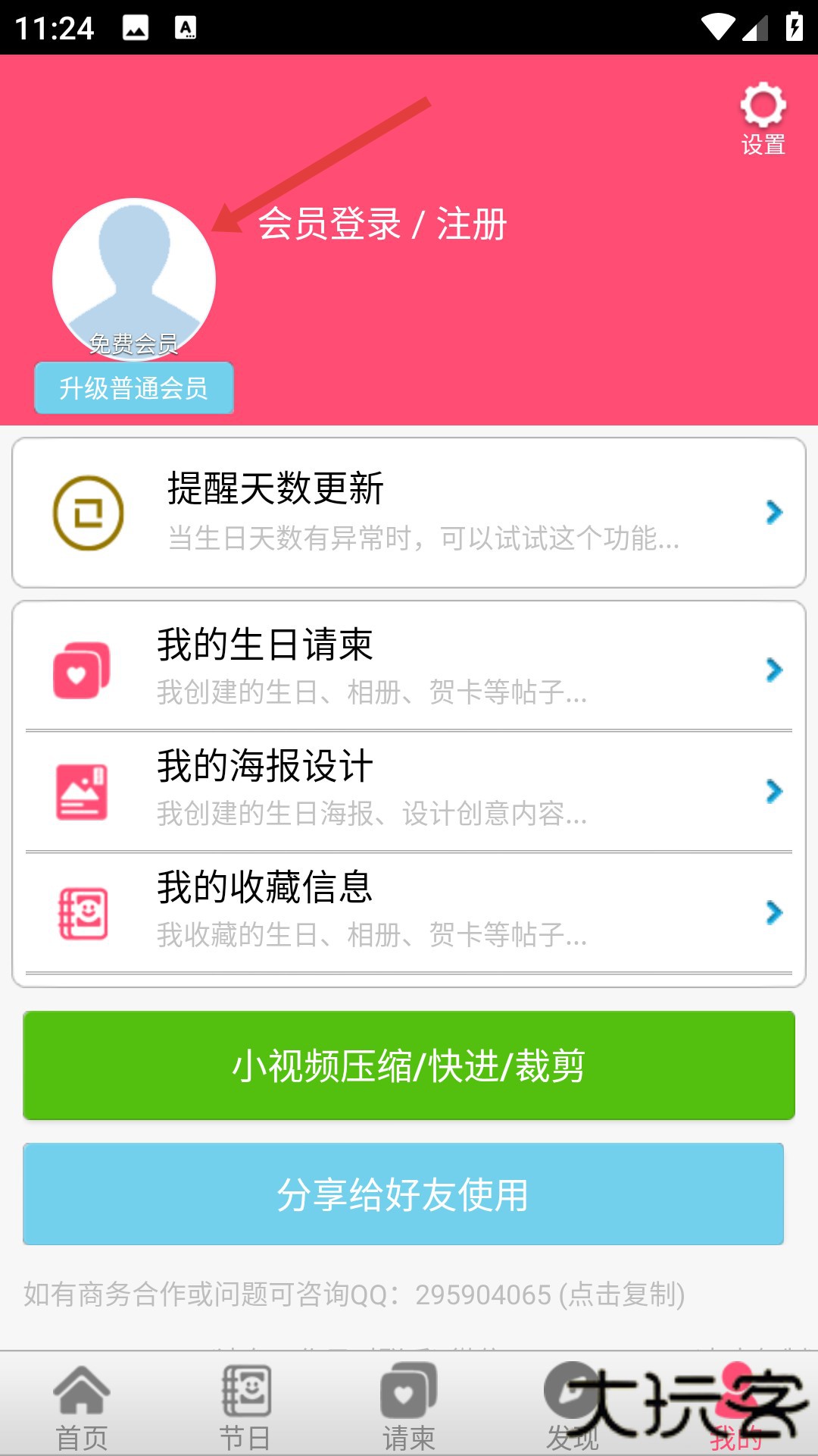 2、在我的页面,可进行会员登录、注册,还有提醒天数更新、我的生日请柬等功能。