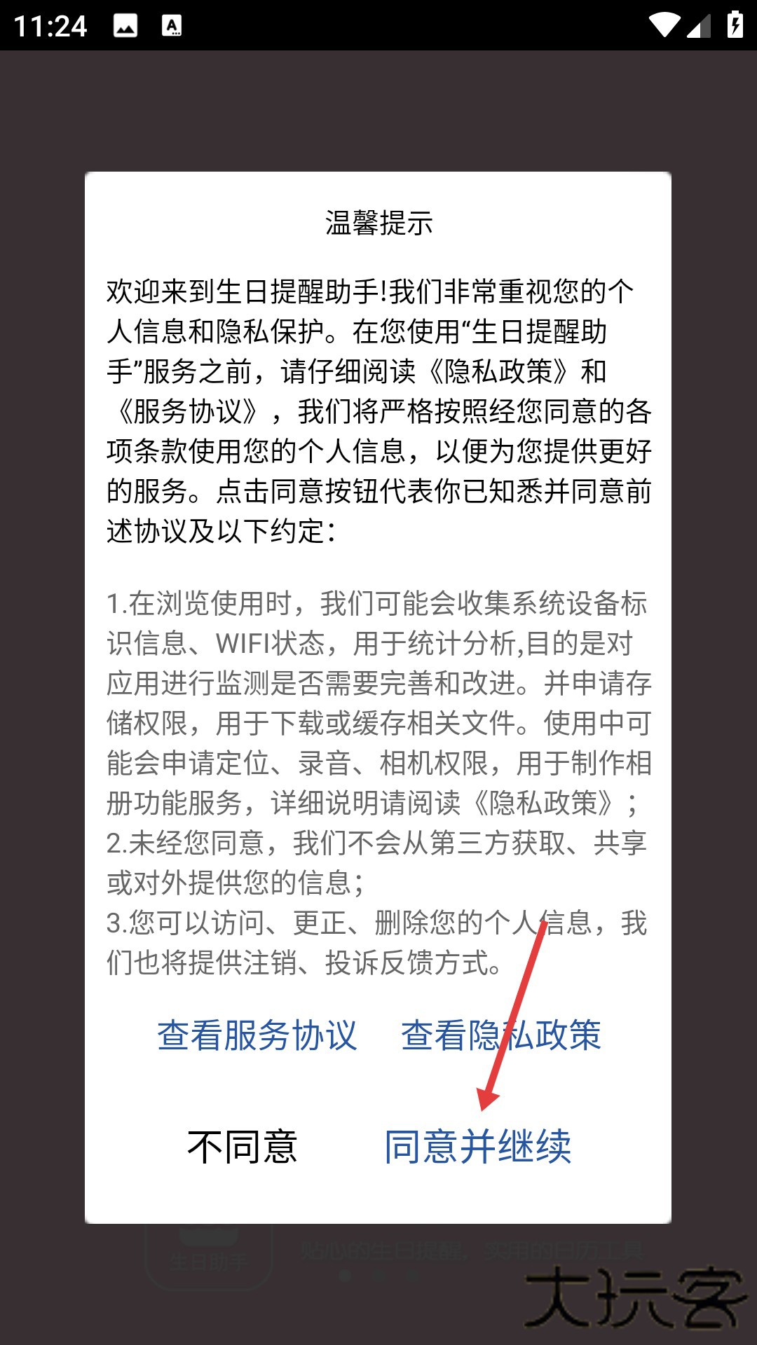 1、下载安装完成后进入,需在用户协议和隐私政策界面点击同意,接受相关条款后才能进入应用。
