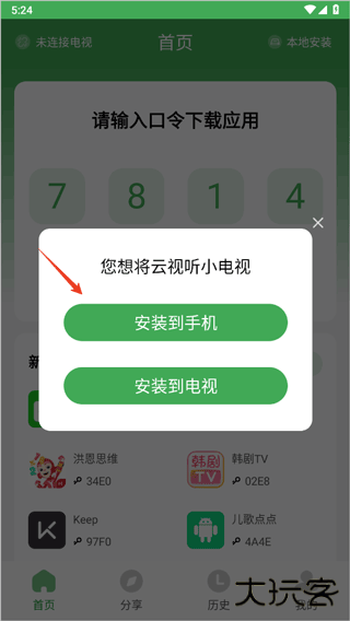 5、电视与手机互连后可以对电视上和手机上的应用进行口令生成分享操作