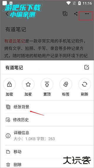 打开有道云笔记软件,在编辑页面点击右上角的“三点”图标。