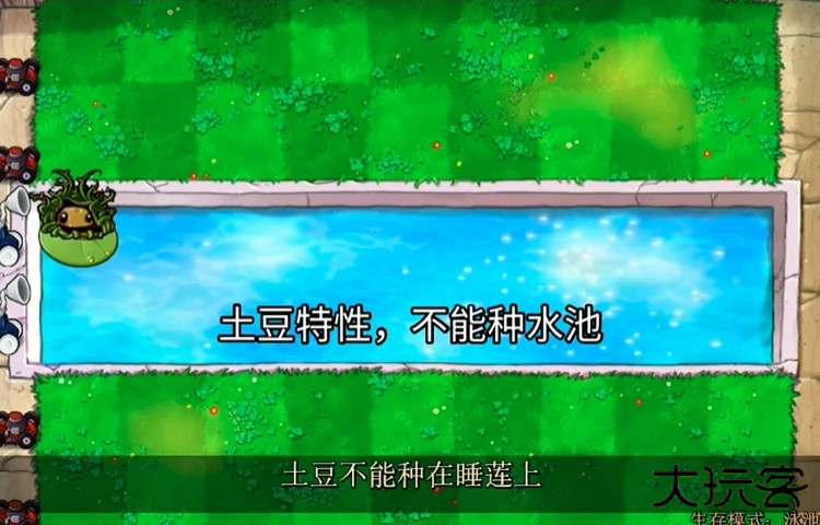 25阳光,冷却20秒,只能种在水盆里,并造成水草和土豆的伤害,陆地水草对僵尸造成25%的伤害,并造成土豆的伤害。