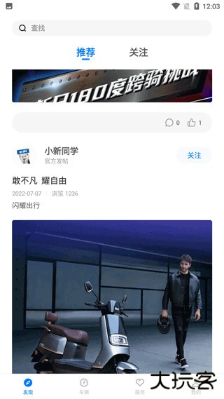 2、点开发现,在这里你可以看到许多关于新日电动车的动态以及资讯。