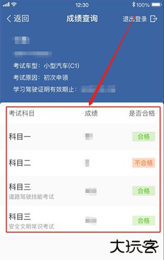 5、之后,点击登录,登录之后,会跳转到成绩页面,显示以往考试记录的成绩。