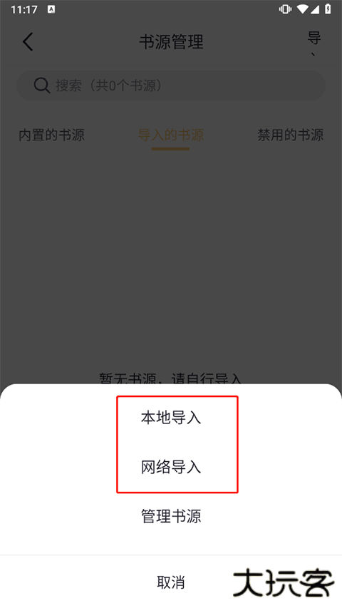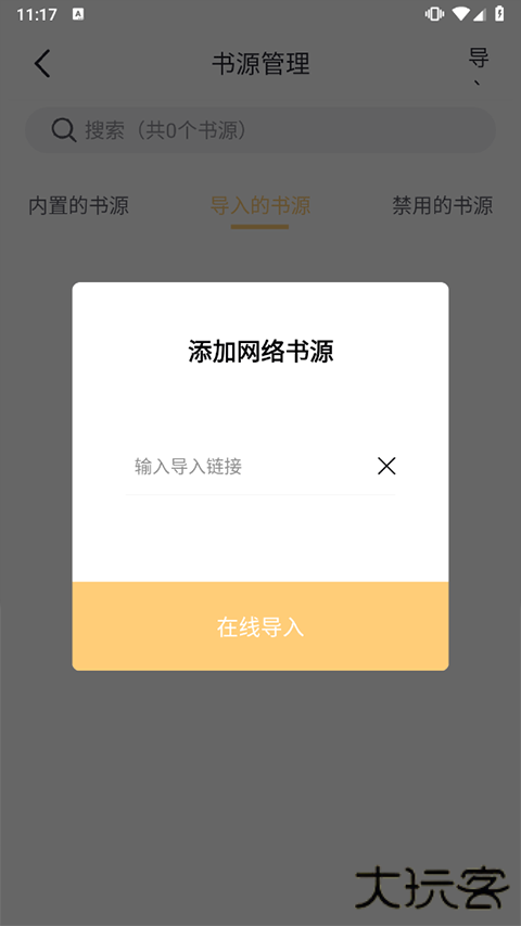 4、例如网络导入,并将书源网址粘贴的框内点击在线导入即可