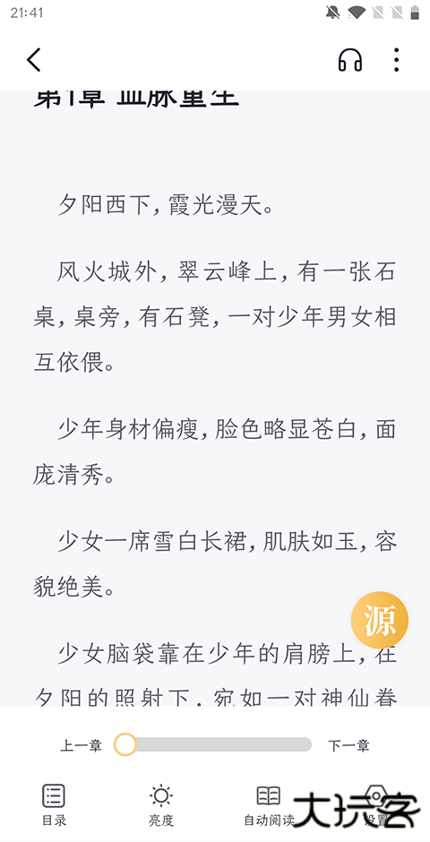 阅读器则中规中矩,该有的功能都有。支持听书、换源、自动阅读、缓存书籍、字体、翻页、横竖屏等设置。还有夜间模式