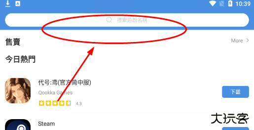 1、点击搜索栏,输入你所要搜索的游戏。