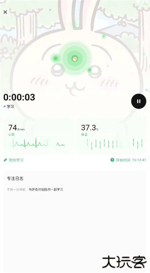 5、点击开始专注,虚拟人物就与陪伴着我们一起学习了。