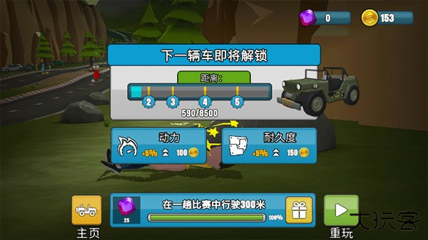 4、行驶车辆的距离到达一定程度后可以解锁新车辆,完成下方相应任务也能获得奖励