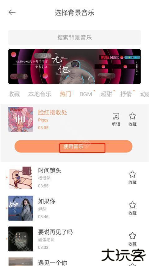5、选择你喜欢的音乐,点击使用即可。
