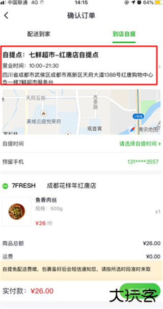2、选择我们目标的七鲜超市,能看到相应的营业时间与详细地址信息,确认无误后下单就能到店自提啦