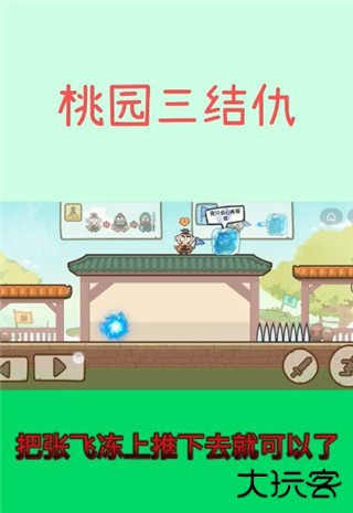 7、第七关,先把关羽和张飞冻上,然后把他们分开推下去,之后在跳下去就过关了。
