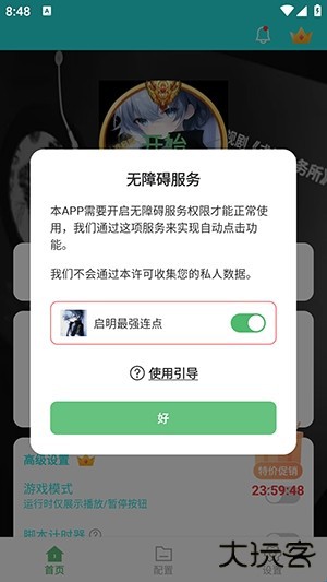 3、您可以自由设置点击速度,实现每秒10下的高效操作!而且,在使用启明最强连点器时,无需进行root,只需开启相关权限即可,即使是第一次接触的小白也能轻松上手。