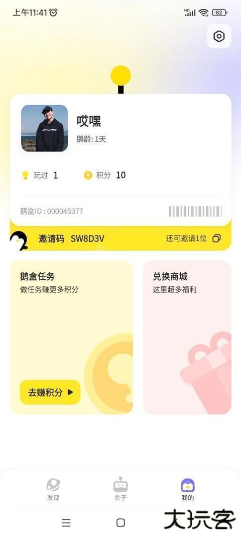 4、点开我的,还可以查看我的鹅盒id,还会免费赠送给玩家邀请码,从而让更多的游戏爱好者加入进来;