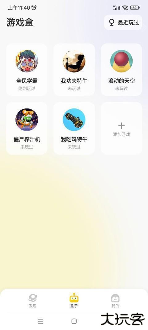3、点开盒子,玩家可以查看你最近玩过的游戏,这里小编玩了全民学霸、我功夫特牛、滚动的天空等热门游戏;