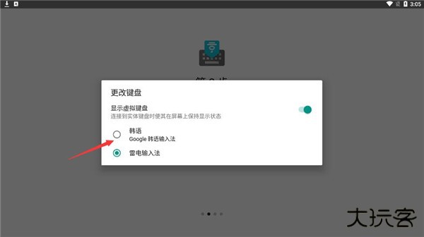 3、选择Google韩语输入法作为默认输入法;