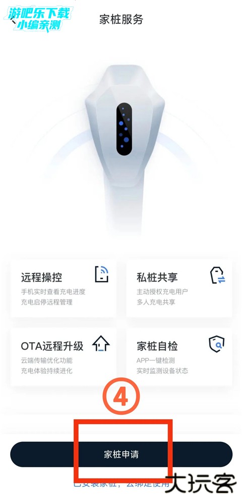 4、若无家桩,先点击【家桩申请】进行充电桩申请。