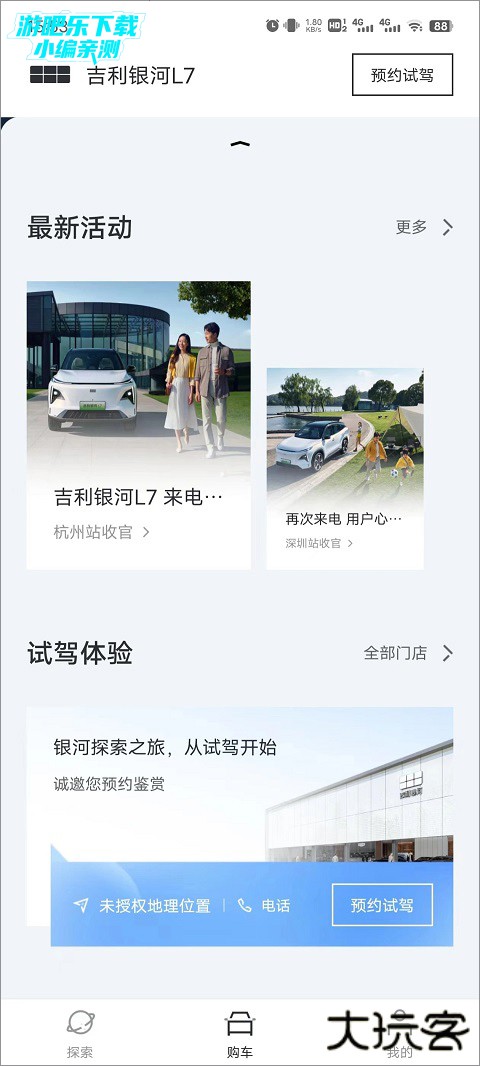 1、在吉利银河App中可以预约L7试驾,查看车辆详情、最新活动。