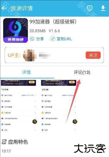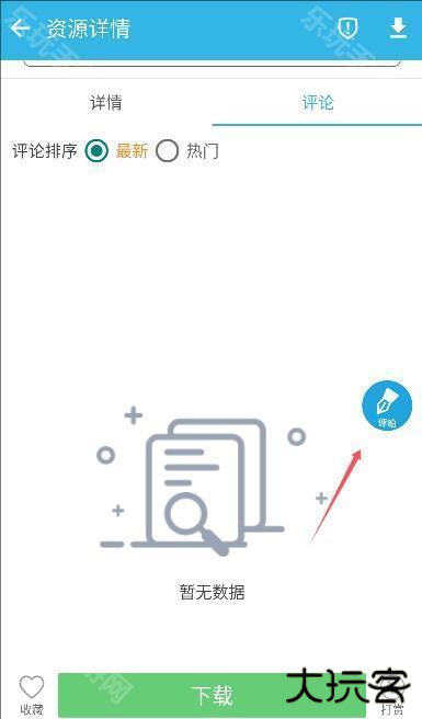 3、进入资源详情介绍页面后,在顶部可以找到评论频道。
