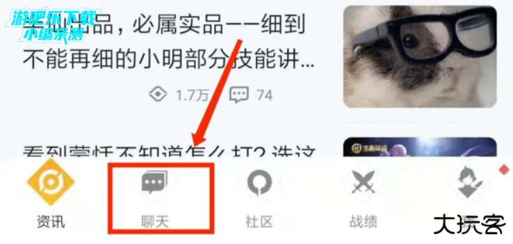 1、打开王者营地,点击“聊天”
