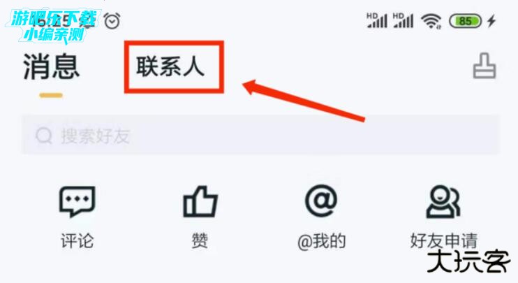 2、点击上方“联系人”可以看到添加的好友