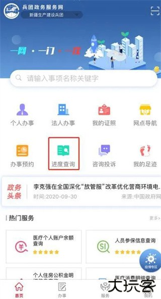 1、搜索业务——首页搜索框中输入您所要办理的业务,点击搜索。用户可以通过站内浏览以及点击“个人服务”或“法人服务”或“部门服务”查找希望办理的业务。