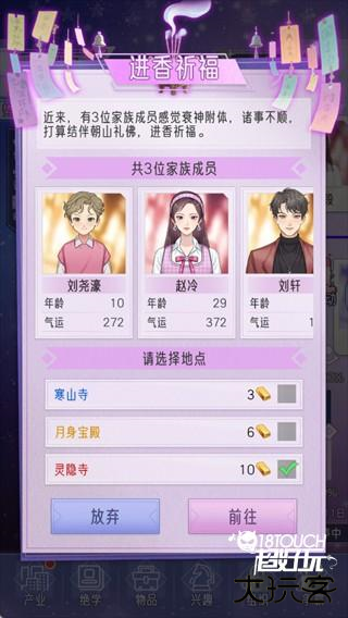 正式开始后,点击右下角按钮自动推进时间,过程中会触发各类事件,如家族成员进香祈福事件,你需选择祈福地点;还有联姻、离婚等事件,不同选择会带来不同属性加成或影响。