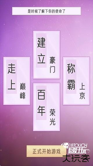 不断经营产业、培养家族成员、应对各类事件,提升家族势力,最终实现建立豪门、称霸上京、走上巅峰、铸就百年荣光的使命,让家族在你的经营下成为真正的豪门望族。