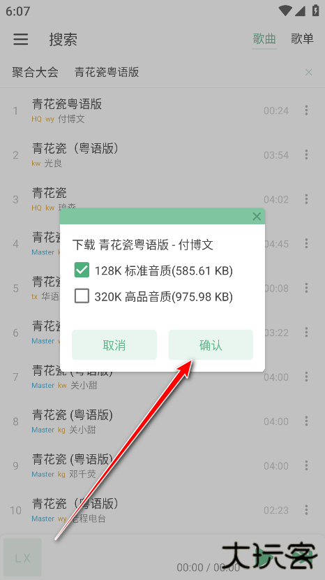 6、勾选我们想要的音质,然后点击确认即可。