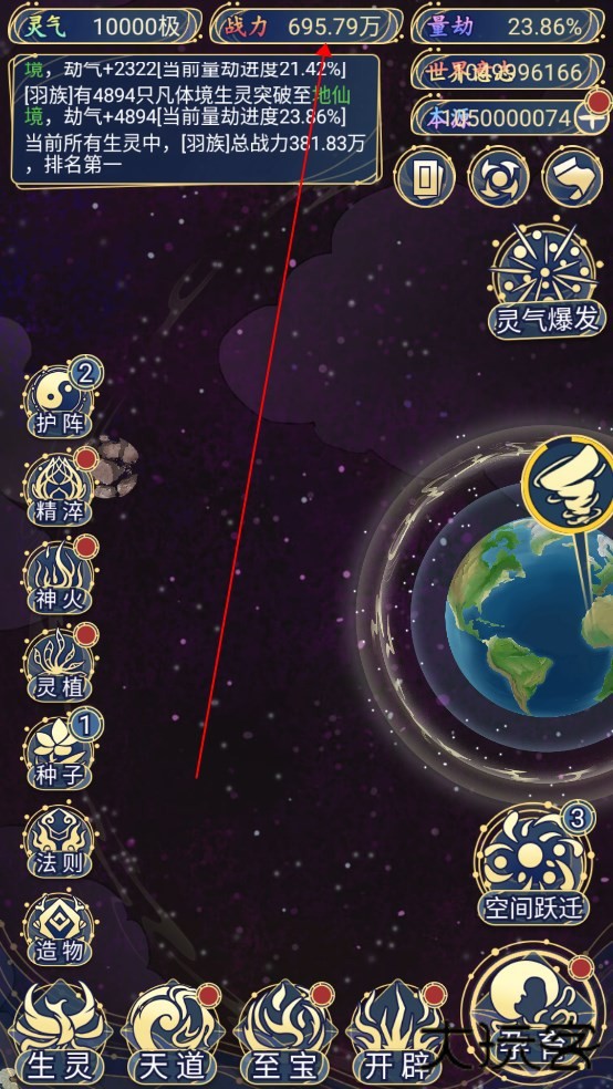 通过建立和升级各种法则,以及修复空间裂痕和建设护阵来使得世界的发展更加稳定,同时还能通过投放稀有神物等操作引起生灵种族之间的争夺,形成合理的良性竞争以便在某些阶段能更快地成长。