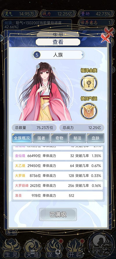 3、世界意志是最重要的东西、法则优先轮回;发生事件减少消耗的人口;毕竟来波量劫掉20%人口;单推人族目前拿满了强者和血脉;