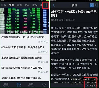 2、接着我们可以看看【资讯】栏目,在这里,有很多股票资讯,用户可以根据自己的需求进行选择阅读,遇到好的文章资讯还可以分享给好友哦。