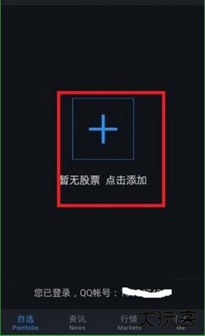 1、打开腾讯自选股,用户可以在看到的【自选】栏目里点击添加自选股。
