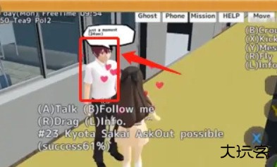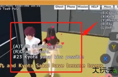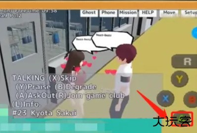 2、接着我们需要靠近喜欢的那个人按(A)Talk,然后再按A(ASKOUT)。如图所示。
