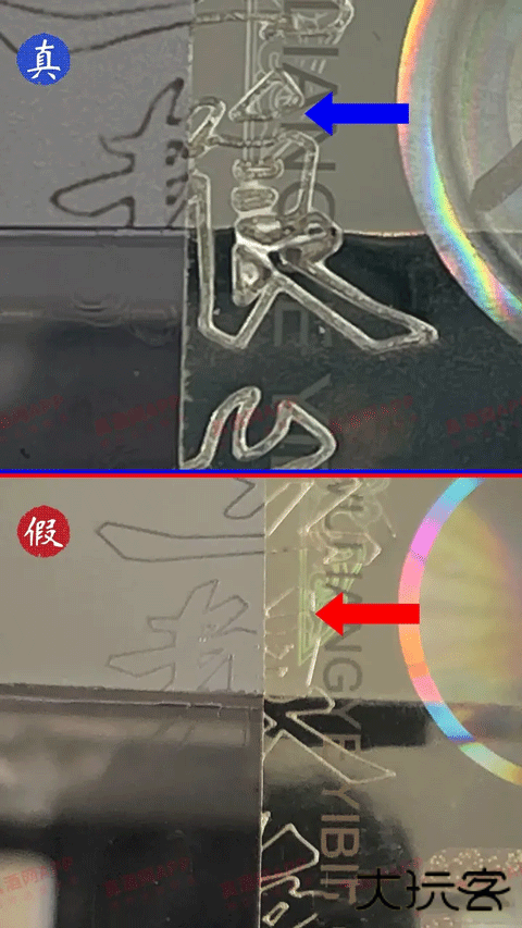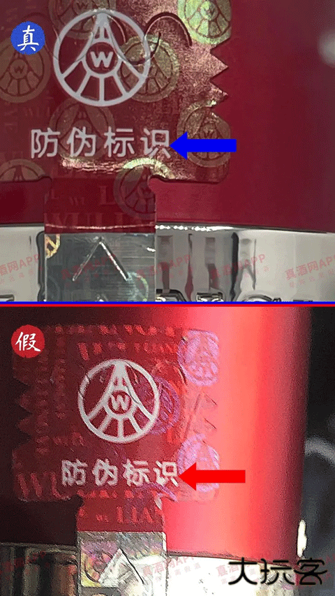 假:如果防伪标“识”字下面没有凸出来,基本可以确定是假的;