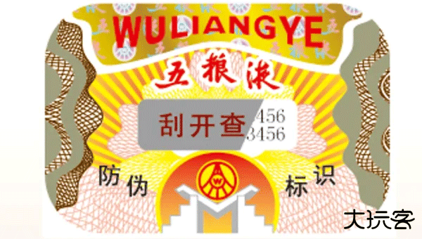 -防伪标下部五粮液厂徽为360度全方位立体浮雕,可随观看角度不同LOGO逐渐改变外观大小;