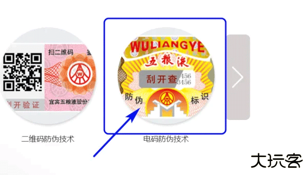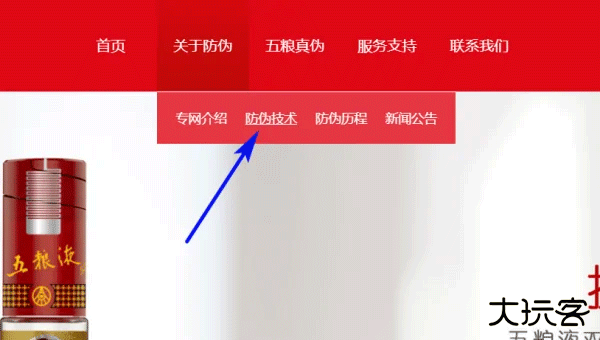 打开五粮液防伪专网,点击关于防伪下的防伪技术;
