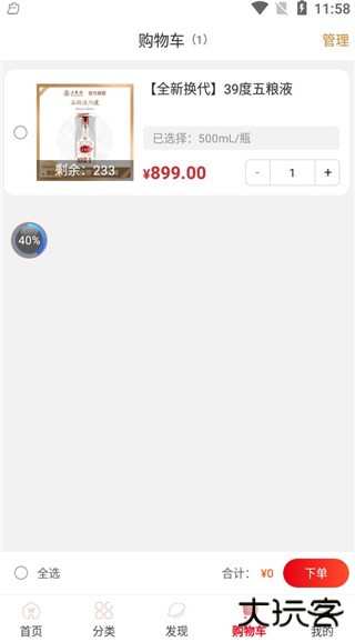 5、进入购物车页面 ,大家可以将自己喜欢的酒添加到购物车里。