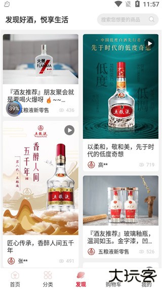 4、进入发现页面,可以看到很多关于五粮液的动态信息。