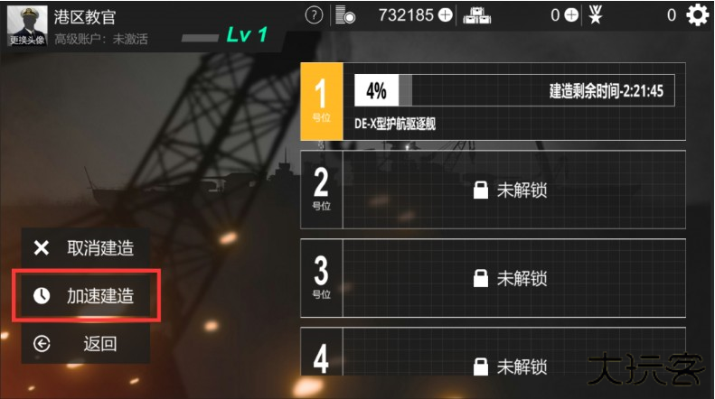 选择对应渠位,点击加速并确认,即可立即完成战舰的建造。使用完毕后,战舰即建造完毕,点击接受战舰,即可迎接您的战舰啦