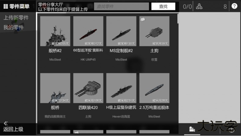 自定义零件是其他提督上传的零件组合体。这其中有各类舰体、武器结构、上层建筑等。您可以自行选择您喜欢的部分进行组装