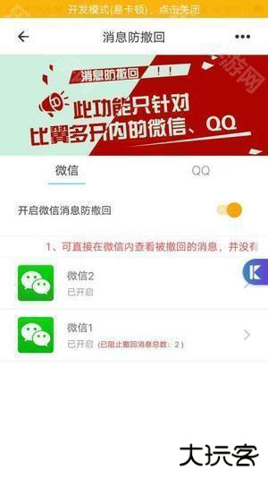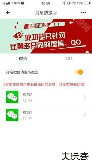 2、在专属应用中打开消息防撤回功能,并将开关开启