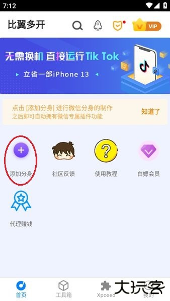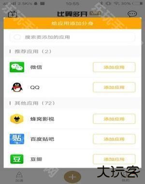 1、首先打开比翼多开后,点击“添加分身”。