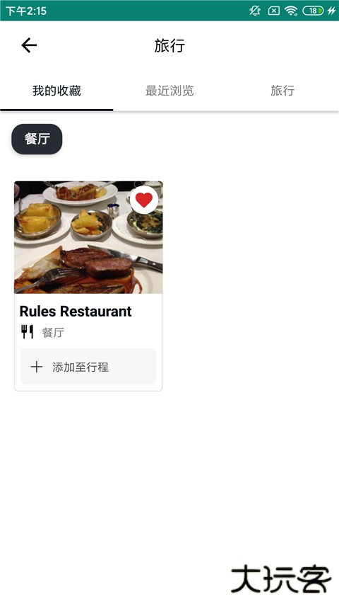 2、在 Tripadvisor 找到您希望收藏的酒店、景点或餐厅后,点击其上的心形图标。 随后系统将询问您是否将项目加入新行程或现有行程。