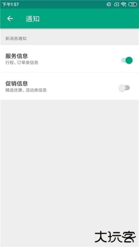 3、进入通知界面,点击【促销信息】右侧按钮关闭。